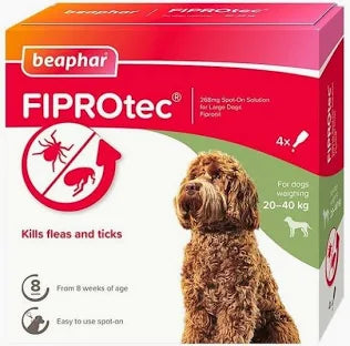 Protect your large dog from fleas with Beaphar Fiprotec Spot On, the trusted solution for effective pest control. This 4-pack delivers convenient monthly treatments that kill fleas on contact and prevent reinfestation for up to 4 weeks. Easy to apply directly to the skin, Fiprotec works fast to eliminate existing fleas whilst creating a protective barrier against future infestations. Ideal for dog owners seeking reliable, veterinary-strength flea protection without the hassle of oral medications. Keep your pet comfortable and flea-free year-round with this essential grooming staple.