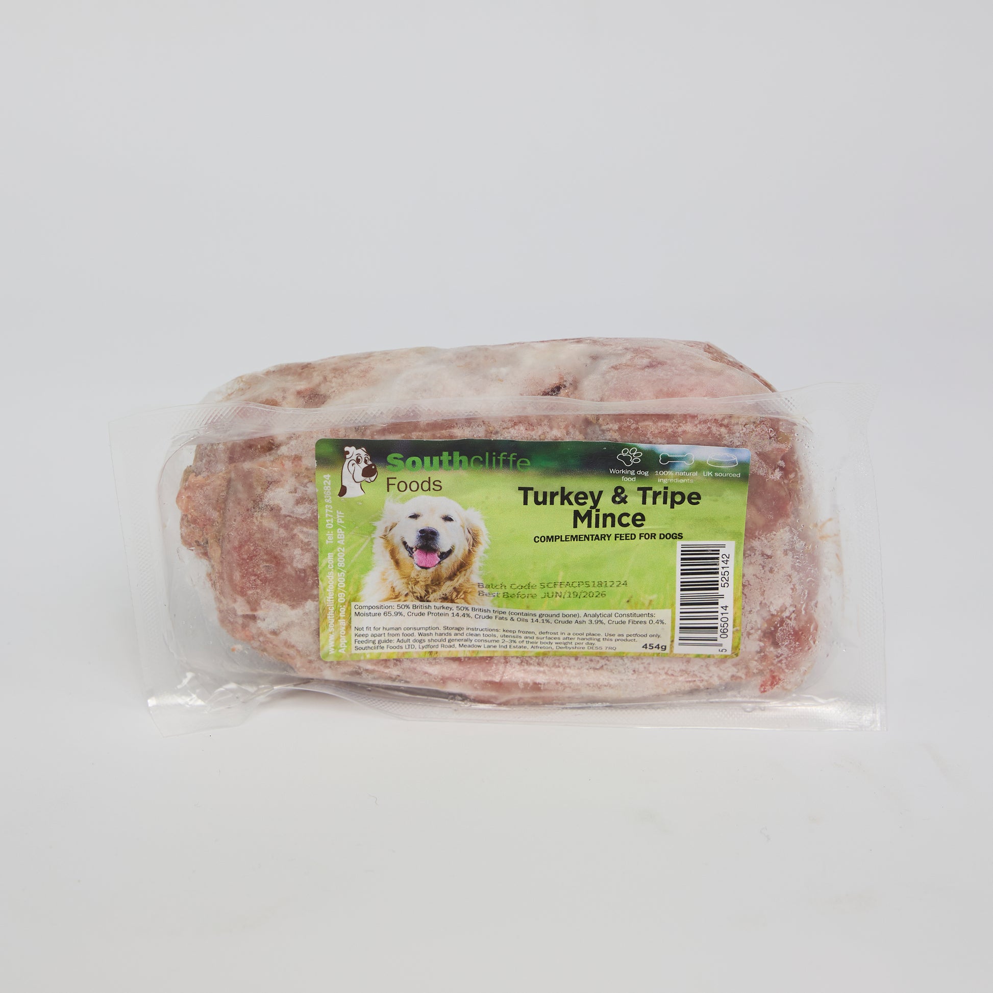 Give your dog the ultimate fresh, raw premium nutrition with the Southcliffe Turkey & Tripe Full Box. Each pack contains 24 portions of 454g, packed with high-quality turkey and nutrient-rich tripe to support digestion and promote a healthy coat. This carefully balanced raw food delivers natural energy and essential nutrients, keeping your dog vibrant and satisfied. Conveniently portioned for easy feeding, it’s the perfect choice for pet owners who want the best in raw feeding.