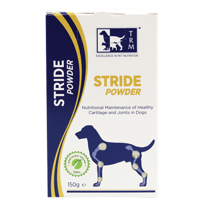 Stride Powder is a complementary feed supplement for the nutritional maintenance of healthy cartilage and joints in dogs. It combines the highest quality Glucosamine HCL, Chondroitin Sulphate, MSM, Vitamin C and Manganese in a convenient powder form. It is particularly suitable for mixing with wet feed.